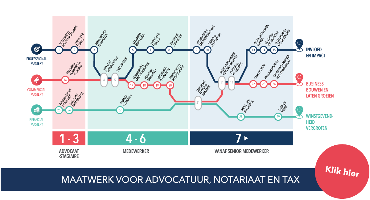 Nieuw perspectief voor advocaat partners die zich afvragen: blijf ik op dit pad of is het tijd voor iets anders? Een besloten en interactieve uitwisseling met ervaringsdeskundigen en vakgenoten over het hoe en wat van het verleggen van je koers. Hoe doe je dat? Wat betekent het persoonlijk voor je? Hoe kun je omgaan met risico’s, kansen en verborgen consequenties? Gedurende 2,5 uur bieden we helderheid, verdieping en inspiratie.